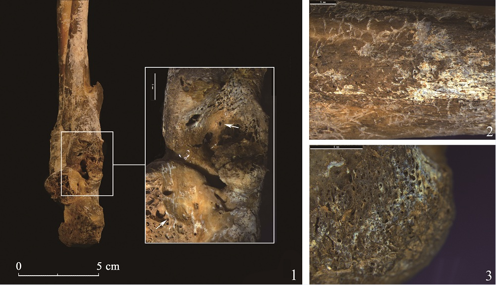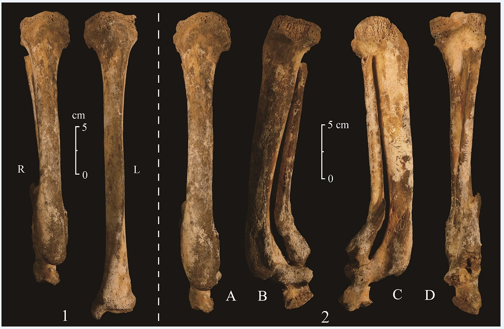 本文对周原齐家东M24墓主骨骼进行了生物考古学研究,发现其右侧胫、腓骨下端1/5处为截肢后畸形愈合;胫骨生理长缩短约5 cm,足部离断后缺失。结合创伤情况、考古学背景及文献实物资料,该个体生前极有可能遭受了“惩罚性截肢”,即刖刑。商周时期刖刑的致死率极高,施刑工具可能有青铜刀锯、钻头、石块等,除拉切外还伴有砍砸行为。被刖之人康复后需拄杖行走并承担守门之责,社会地位低下、饮食状况不佳且饱受他人歧视,境遇十分悲惨。周原齐家东M24墓主是我国经过系统研究且年代最早的截肢病例,也是目前所见最为疑似刖刑的首例个体,为深入了解西周时期的刑罚体系、医疗水平及社会观念等提供了生动资料。