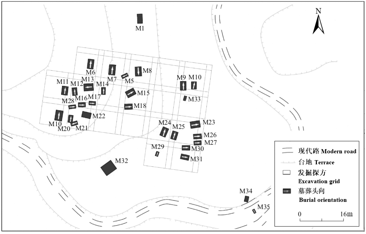 Fig.1 The distribution of burials at the Houshi cemetery, Lishi district, Lyuliang City, Shanxi Province