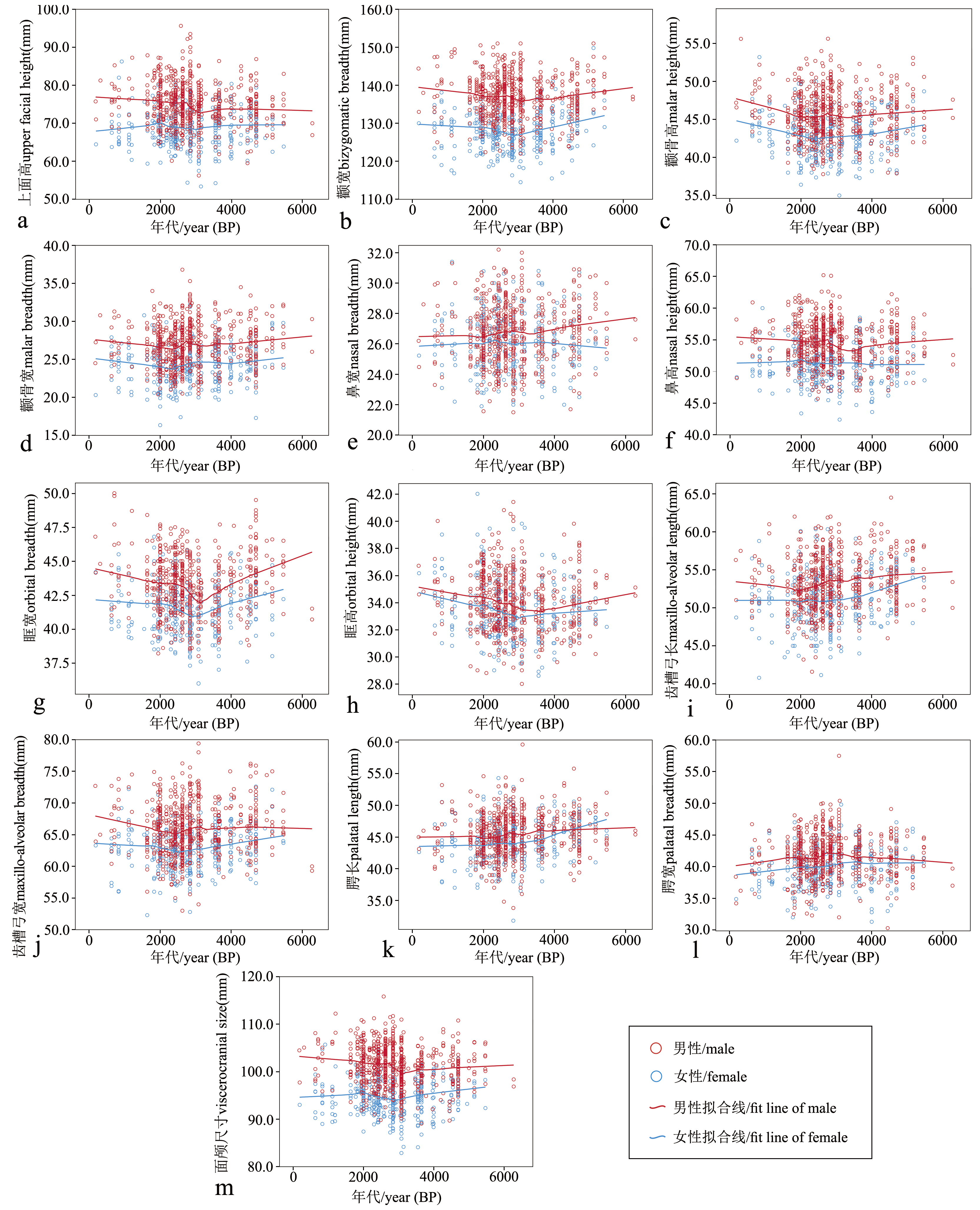 李咏兰, 于会新, 张兴华, 等. 中国不同地理分区人群的头面部特征[J]. 人类学学报, 2023, 42(6): 793-806