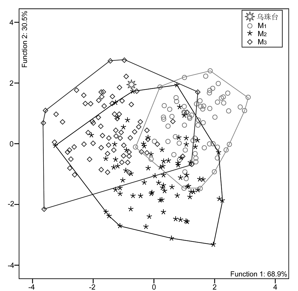 表2 M3主要形态特征不同级别及出现率(乌珠台牙齿各特征级别使用灰色底纹标记)*