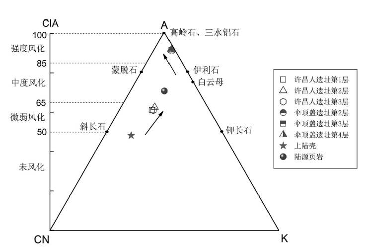 表3 许昌人遗址和伞顶盖遗址常量地球化学元素百分比(%)
