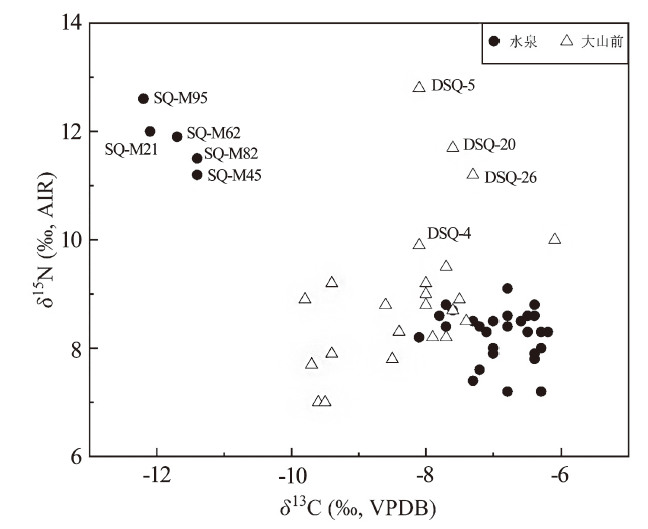 Tab.2 Isotopic data of human bone collagen from the Dashanqian site