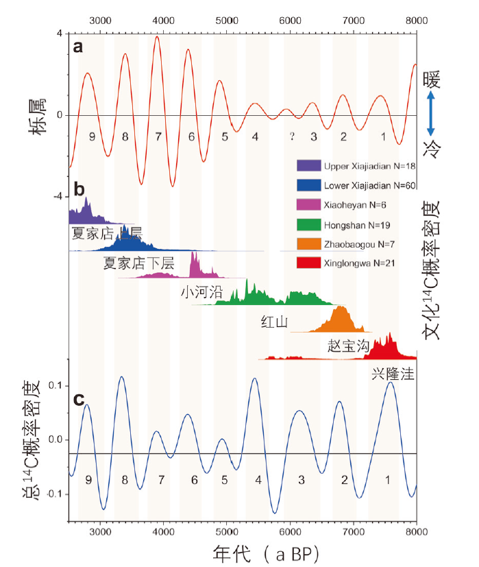 Xu DK, Lu HY, Chu GQ, et al. Synchronous 500-year oscillations of monsoon climate and human activity in Northeast Asia[J]. Nature Communications, 2019, 10(1): 1-10