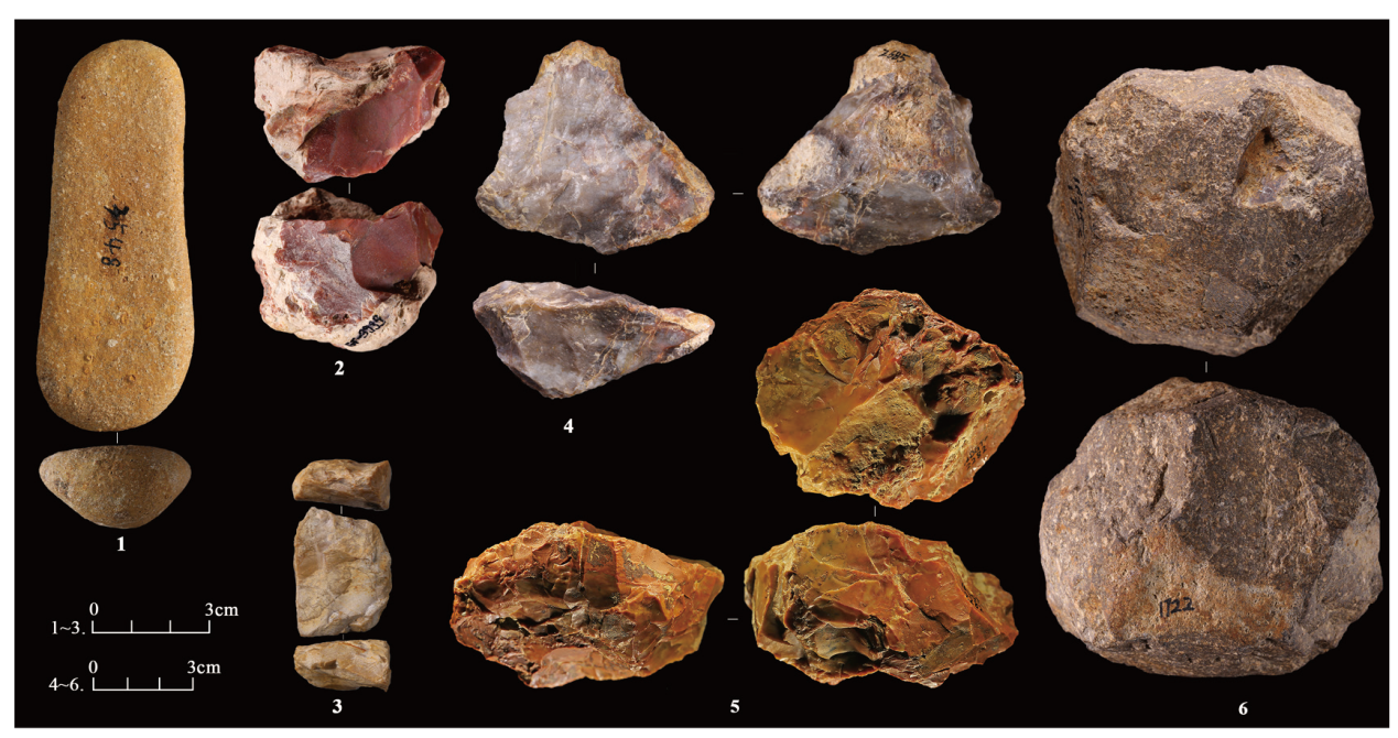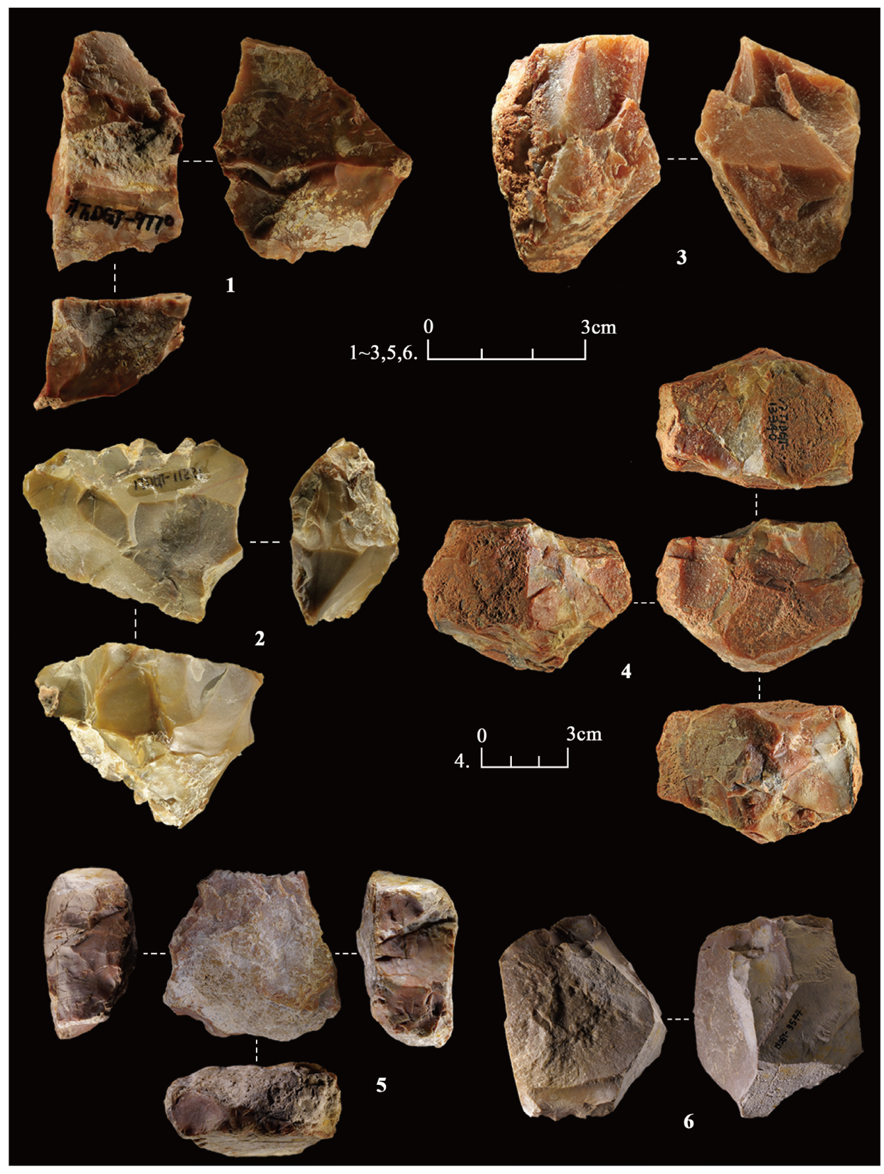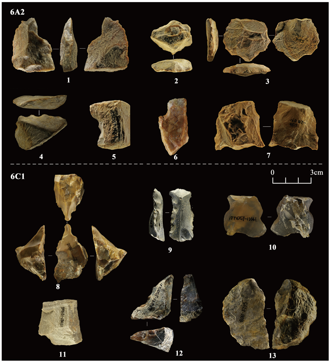 From 2016 to 2019, a new excavation was undertaken at Trench 1 area which is the largest and the most prolific one. According to the sedimentary matrix and the density of stone artifacts, eight cultural layers were identified and tens of thousands of stone artifacts as well as large number of fossils have been unearthed. Archaeological materials were concentrated in layer 6A2 and 6C1. The lithic assemblages include cores, flakes, chunks, shatters, and retouched pieces. The attributes of lithic are similar between layer 6A2 and 6C1 in raw materials, flaking technique and retouched methods. The principal raw material is locally available chert from the ancient riverbed and outcrops. Hominins might have realized the difference of different raw materials, and intentionally selected relatively high-quality raw materials for flaking. The dominating flaking technique was freehand hard hammer percussion without predetermined preparation on the core, and bipolar technique was occasionally used. Most of cores are tested cores and multifacial flaking cores. Retouched tools are dominated by single-edged scarpers. Retouched edges were usually irregular, unifacial without standardized shapes. Variation between these two layers has also been observed, for instance the percentage of denticulates in layer 6A2 is lower than layer 6C1, whereas the former yield more double-edged scrapers and multifacial flaking cores. It might suggest that raw materials were consumed more intensity in layer 6A2.