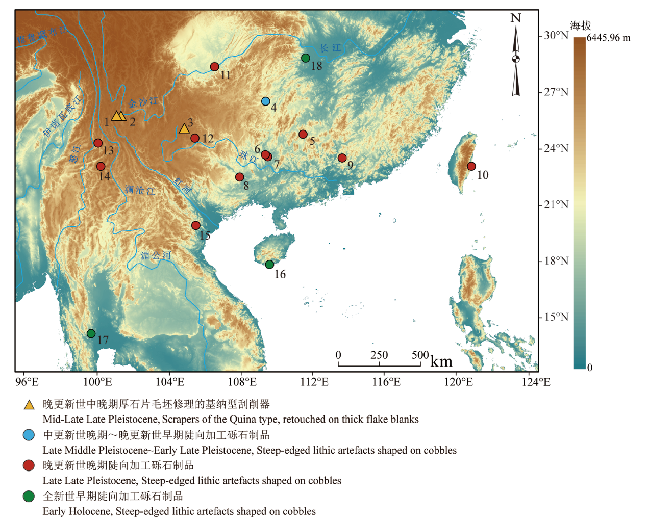 The two types of steep-edged lithic artefacts differ greatly in both production concept and morphology, but the late Late Pleistocene lithic industries in the Southwest China-Lingnan region seem to share a technological preference for invasive multi-tiered retouch on lithic blanks. So far, it is difficult to associate all those lithic industries with certain populations, despite fossil and genetic evidence suggesting that a variety of population groups should have inhabited in this vast area during the late Middle Pleistocene-Late Pleistocene. This vast area covers a wide range of topographic and climatic environment, and the interrelationships with lithic industries or population groups remain to be explored.