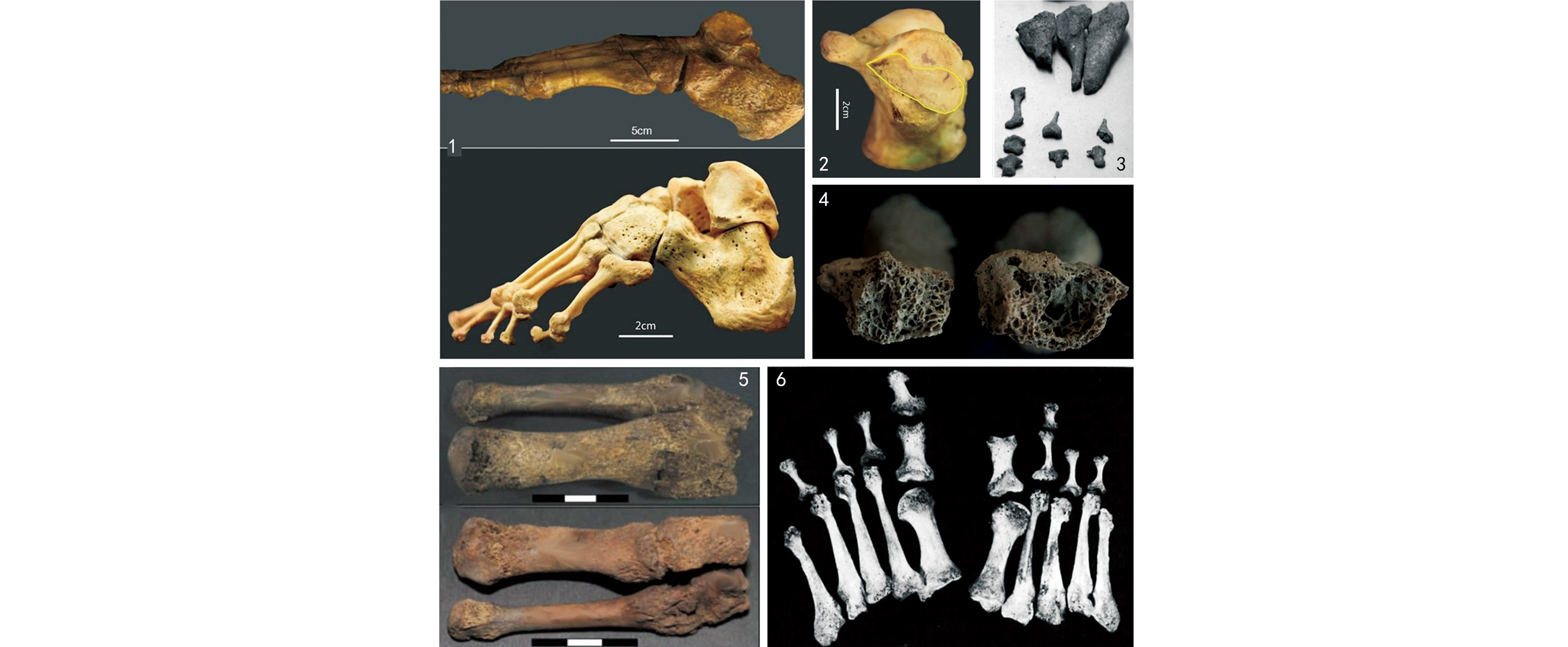 The authors studied the foot bone deformation in Taohuayuan Cemetery (14-19 century) of Jixian County in Tianjin. 101female individuals were observed and analyzed. The results show that the homonymous bones of individuals have different shapes and degrees of deformation. It shows that the deformation symmetry in both sides. Tarsals are mainly manifested in the reduction of overall size, and some of them will produce deformation. The shape of metatarsal and proximal phalangeal bone will change dramatically due to the influence of foot binding force, which is mainly manifested as the thin and curved metatarsal and proximal phalangeal bone, the change of articular surface, and the deformation of proximal and distal metatarsal body, upper and lower diameter and transverse diameter of metatarsal body and phalangeal body.In general, metatarsals and phalanges are more deformed than tarsals. The authors summarized the standard of judging whether an individual has foot bound or not, especially point out that it is necessary to observe the morphological changes of talus and calcaneus at the same time. In view of other diseases (such as hyperarched foot, leprosy and rheumatoid arthritis) can also lead to the deformity of foot bone, it is necessary to analyze the cause of formation when diagnose. Foot binding is caused by culture, and this kind of foot bone deformation is different from which caused by pathology. Functional stress analysis can effectively explain the cause and process of foot bone deformation.