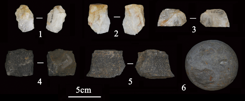The Fanba site is located on the second terrace of the Yishui river, a tributary on the left bank of the Hanjiang river in Yangxian county in the Hanzhong basin, southern piedmont of the Qinling mountains. A systematic excavation was carried out from February to June in 2016, and a total of 784 lithic artifacts were unearthed within an exposed area of 175 m2. Analysis of the lithic assemblage suggests that the stone artifacts are made on the local cobbles/pebbles, which were collected from the nearby alluvial deposits riverbank. Quartz was the most frequently used as raw materials, and quartzite, fine sandstone, igneous rock, and flint were occasionally used.