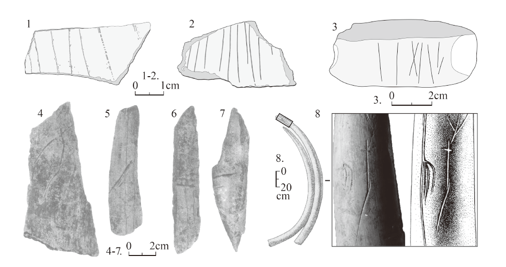 Discovery and research of the engraved remains in the early and middle Paleolithic periods