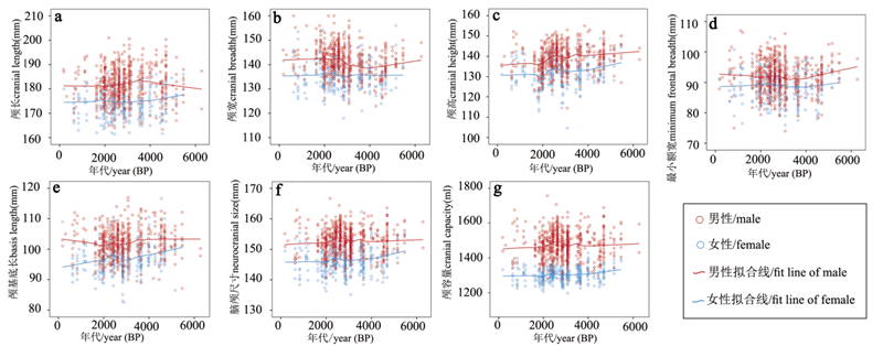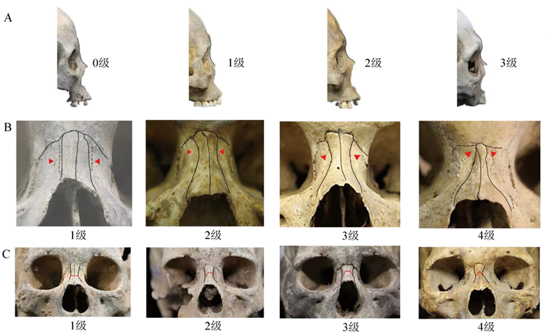 为探讨全新世人群鼻骨区域的变异性以及与鼻部形态的关系,本文采集了中原地区10个遗址的286例人骨的鼻骨形态特征数据,分别进行T检验、单向方差分析和Pearson相关性检验等。结果发现,中原地区人群鼻骨整体属中窄型,鼻根点略有凹陷,鼻骨鼻翼微隆起、形成小曲线;与其他时期相比,明清时期鼻骨类型更窄、鼻骨高和鼻骨高比例指数更大、最小鼻骨宽最小;男性较女性的鼻骨尺寸变异更为显著。大量数据分析显示,中原地区古代人群的鼻骨高与鼻高呈正相关性,且鼻骨高比例指数在不同时期变异范围相对稳定,而最小鼻骨宽与鼻宽多数情况下不具有统计学意义上的相关性,鼻骨宽指数在不同时期离散度高且不具有规律性。