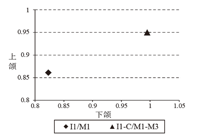 | 1° | 2° | 3° | 4° | 5° | 6° | 7° | 8° | 总牙数 Total n | 平均磨耗 Mean wear | |