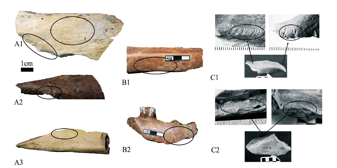 Lupo KD, O’connell JF. Cut and tooth mark distributions on large animal bones: Ethnoarchaeological data from the Hadza and their implications for current ideas about early human carnivory[J]. Journal of Archaeological Science, 2002, 29(1): 85-109