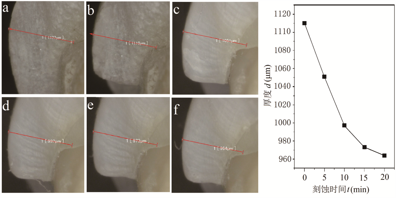 Fig.5 Evaluation of damage to samples 11 during dental drill cleaning and etching the etching duration of the sample is 5, 10, 15 and 20 minutes respectively