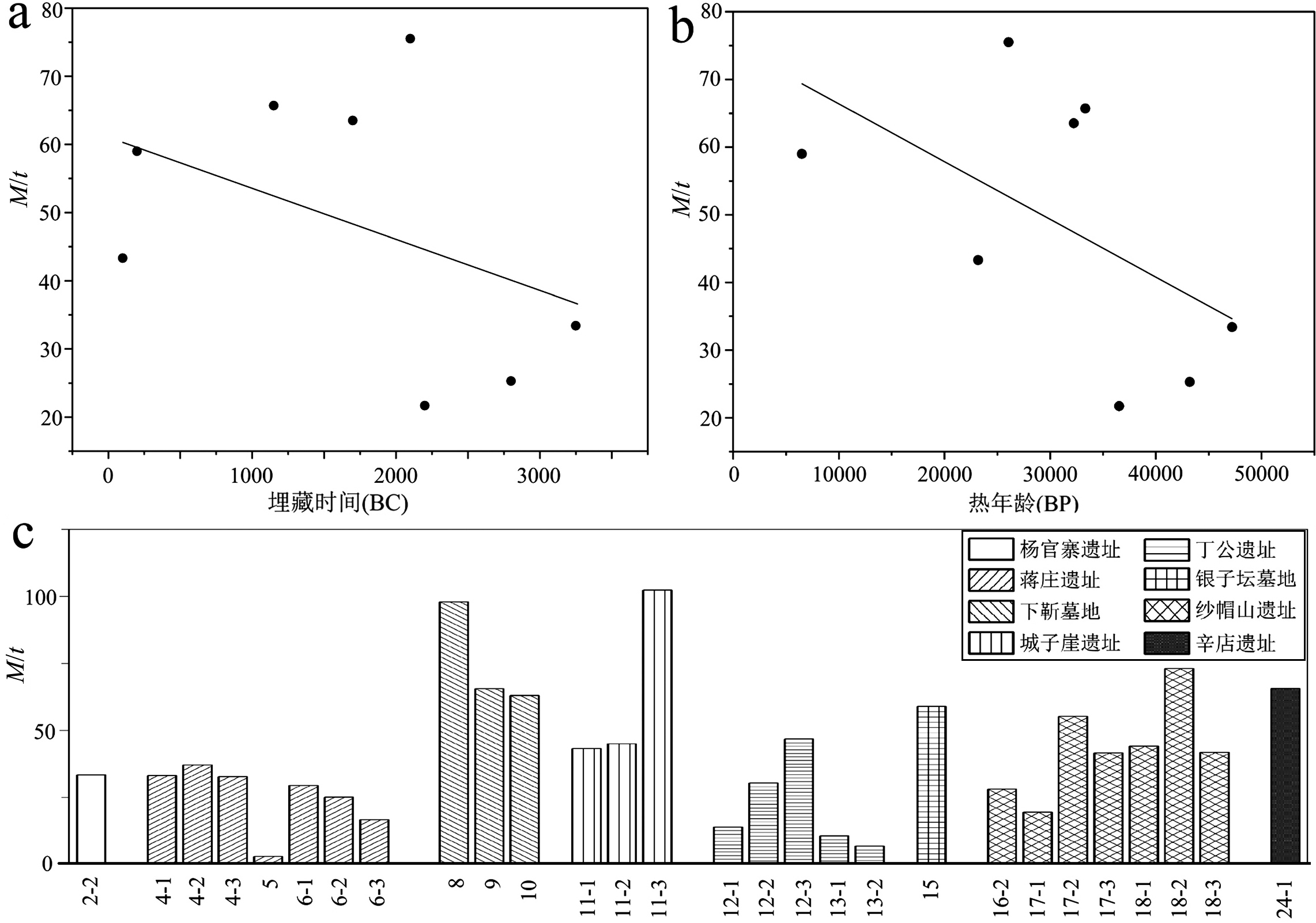 | 序号No. | 标本号 Sample | 成年 adult | 性别 sex | 遗址名称site | 遗址位置 location | 年代age | 热年龄 thermal age(BP) |