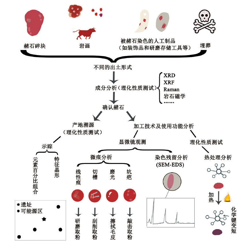 Ochre is one of the most common mineral pigments in archaeological studies. The current archaeological evidence suggests that the use of ochre became more common since 100 ka years ago, which was important for human adaptation to the more drastic environmental changes and the continuous interaction of social culture network. Recently, more and more archaeological remains related to ochre-using have been unearthed and identified in China, however, the research work needs to be further developed. Therefore, how to make comprehensive use of various test schemes to deeply explore the development pattern and ethnological significance of human behavior indicated by the ochre pigment needs us to make a systematic summary. In this paper, referring to the international studies in the fields of archaeology, geophysics and chemistry, ethnology and so on, we concluded the main parts of paleolithic age archaeological ochre analysis asthe qualitative chemical composition, analysis of provenance, and operational technology. The multidisciplinary comprehensive analysis on archaeological remains of ochre using is a potential research field, hitherto, the examples of domestic ochre using is still limited.