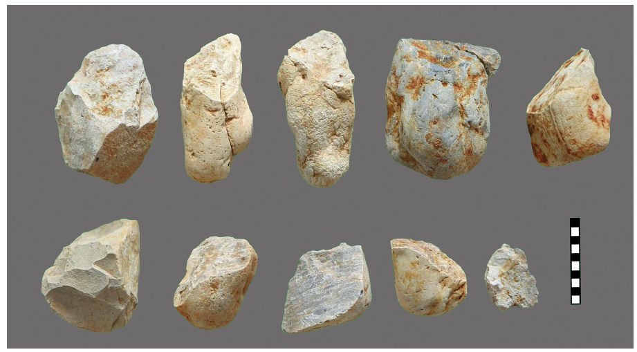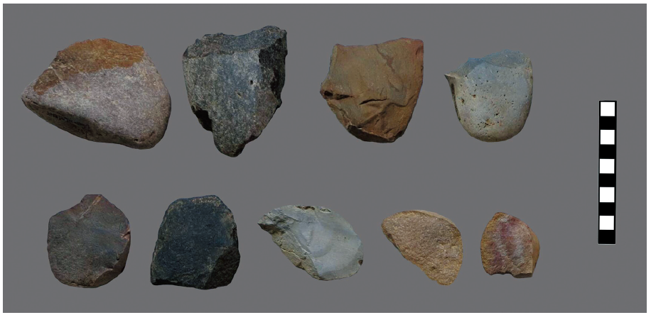 | 6 | 砾石、石片、砍砸器、手镐、刮削器、断块等 | 67 | 8.05% |