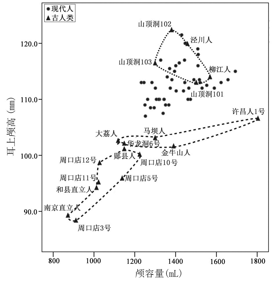 | 南京直立人 | 头盖部完整, 底部缺失 | 1225 | Woo公式法[ | +349 |