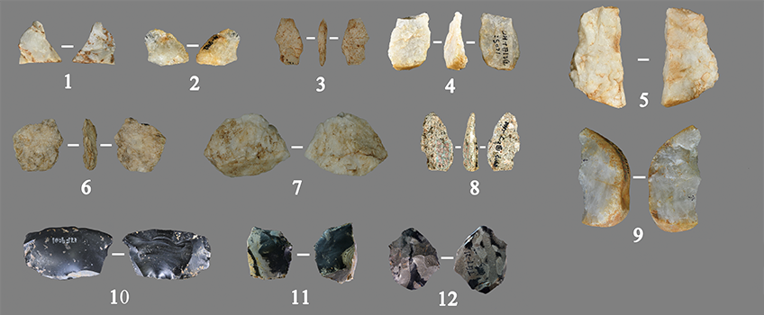 All in all, the HLD core and flake technology includes bipolar flaking of low-quality quartz rock block and cobbles, and freehand flaking of chert, lava and quartz block fragments, which demonstrate knappers intentionally selected good-quality raw materials to manufacture small flakes and use them for some function. Most chert and relatively good quality of quartz flakes show use wear, probably associated with carcass processing given the presence of cutmarks on some bones. Furthermore, it can be inferred that the general feature of HLD toolkits were expediently made for the function of getting food from animal resources and the knapping strategy was adapted to the local resources in the HLD archaeological landscape.