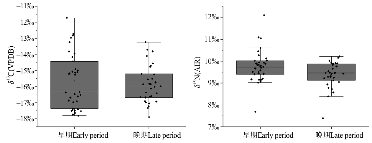 | 分组Groups | 数量n | δ13C(‰) | δ15N(‰) | ||||||||||