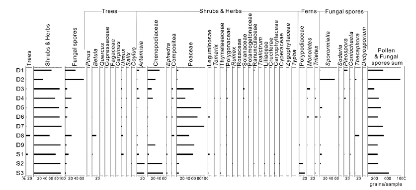 Huang XZ, Zhang J, Storozum M, et al. Long-term herbivore population dynamics in the northeastern Qinghai-Tibetan Plateau and its implications for early human impacts[J]. Review of Palaeobotany and Palynology, 2020, 275:104171