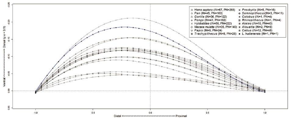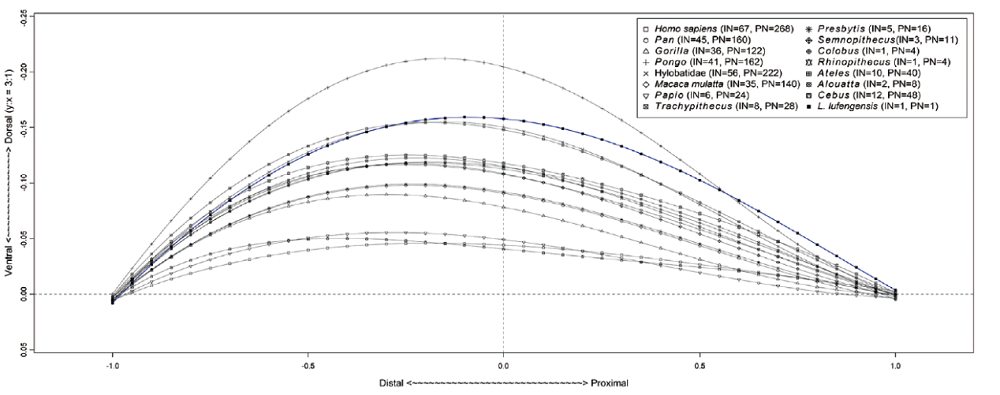 Deane AS, Begun DR. Broken fingers: retesting locomotor hypotheses for fossil hominoids using fragmentary proximal phalanges and high-resolution polynomial curve fitting (HR-PCF)[J]. Journal of Human Evolution, 2008,55, 691-701