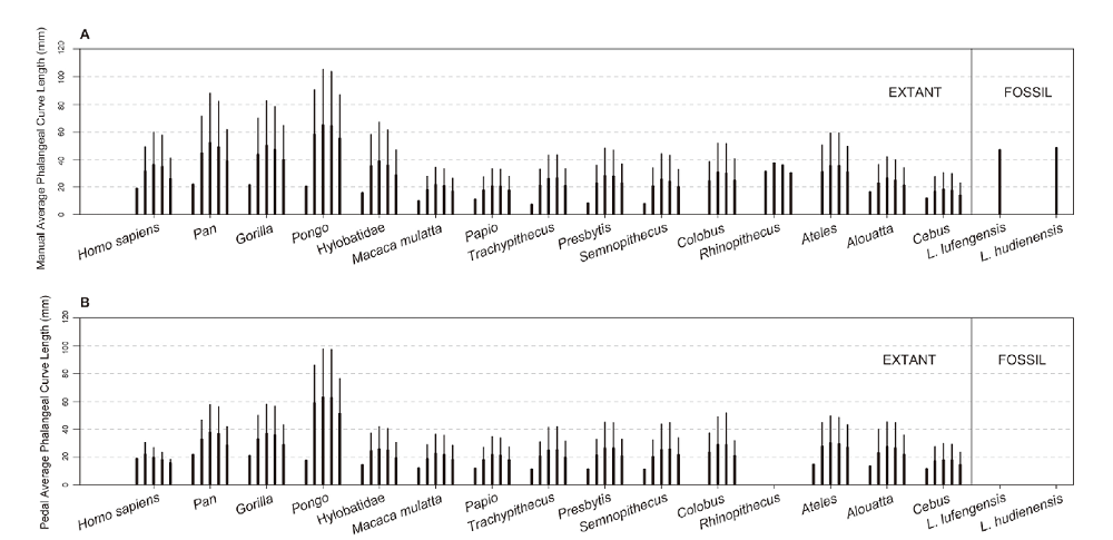 | [33] | Congdon KA. Interspecific and ontogenetic variation in proximal pedal phalangeal curvature of great apes (Gorilla gorilla, Pan troglodytes, and Pongo pygmaeus)[J]. International Journal of Primatology, 2012,33(2), 418-427 |