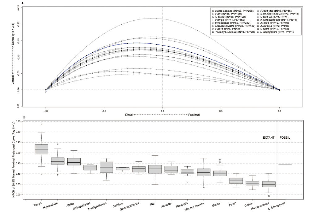 Rein TR. The correspondence between proximal phalanx morphology and locomotion: Implications for inferring the locomotor behavior of fossil catarrhines[J]. American Journal of Physical Anthropology, 2011,146, 435-445
