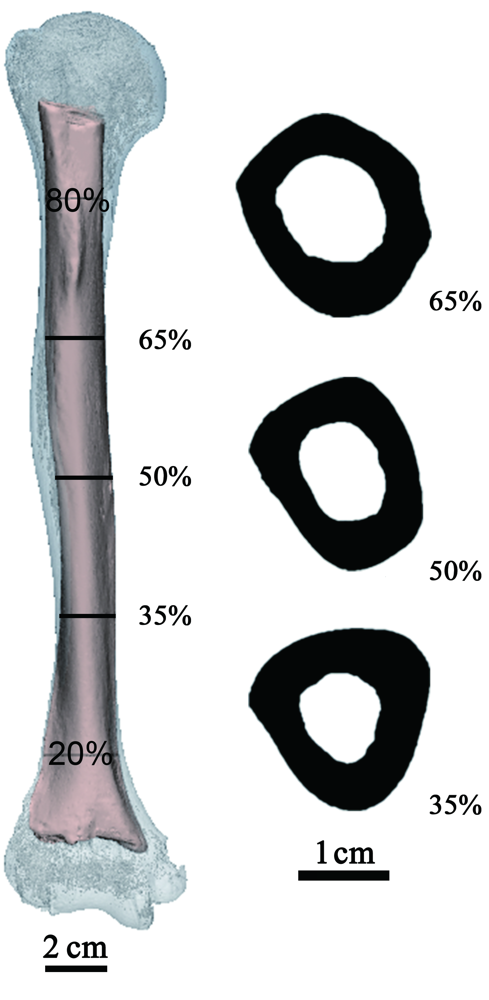 Tab.4 Percent cortical area (Rct) comparisons of PA103’s right humeral mid-distal (35% position) and midshaft (50% position)diaphysis