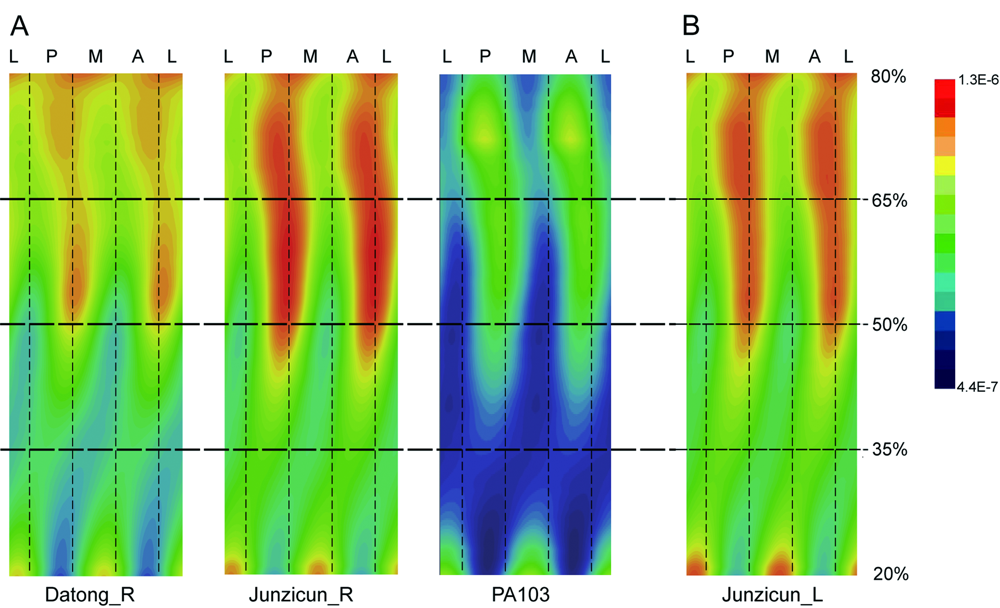 | 标本Specimens | 35%生物力学粗壮度J(标准化) | 50%生物力学粗壮度J(标准化) | |||