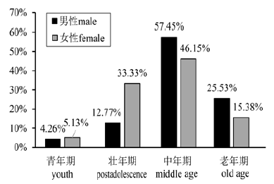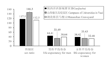 Tab.1 Statistics on gender and age distribution of residents in Caojiazhai Cemetery