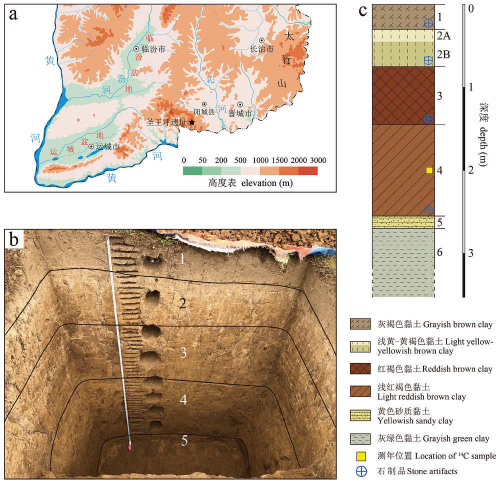 The Shengwangping site is located on the top of Xicheng Mountain, Yangcheng County, Shanxi Province, at 35°34’N, 112°22’E, and 1690 m above sea level. The site was first discovered in 2006, and in later investigations stone artifacts were found on the surface. There is still a lack of information on unearthed layers, specific ages, and technical characteristics and cultural labels of stone artifacts, therefore to determine the relationship between Shengwangping and the Xiachuan culture, we investigated Shengwangping site from September to October 2020. A total of 1717 stone artifacts were obtained, including 11 stone artifacts with microlithic traits from the surface and 1706 when cleaning the profile. The profile was divided into four cultural layers, of which 34 lithics were unearthed in the first layer, 36 in the second, 416 pieces in the third, and 1220 pieces in the fourth layer. Lithic technical analysis shows similar cultural characteristics between the third and fourth layers. Lithic assemblages are mainly small and miniature in size made primarily of chert. Bipolar technology plays an important role in the two layers, and becomes the predominant core reduction pattern in the third layer. It is mostly applied to the development and utilization of cryptocrystalline and small blanks with a relatively higher degree of core reduction. Lithic assemblages of the third and fourth layers include a small flake tool industry with scrapers as the predominant type. Pièces esquillée and spur-like tools were only unearthed in the third layer, not the fourth layer. Tools were retouched by freehand percussion, not pressure. The lithic technology characteristics of the third and fourth layers and the lower cultural layer of the Upper Paleolithic at the Xiachuan site belong to the small flake tool technology. Dating results of a charcoal sample in the middle of the fourth layer is 45590±510 BP cal (IntCal 20, 95.4% probability) indicating that the Shengwangping site may be the earliest Upper Paleolithic site found in the southern Shanxi Province.