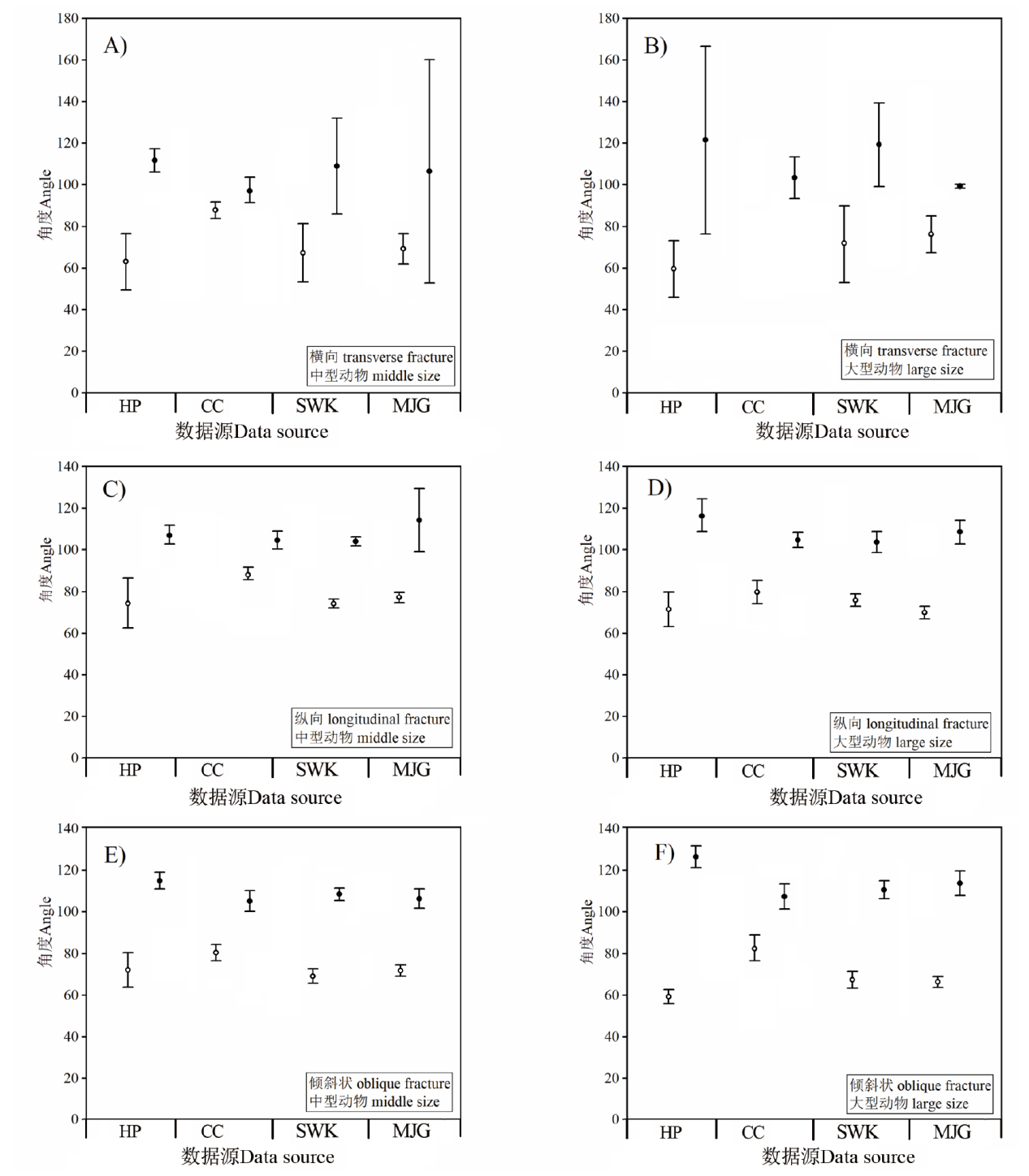 Tab.1 The statistical results of fracture angles of green bones from Majuangou 3