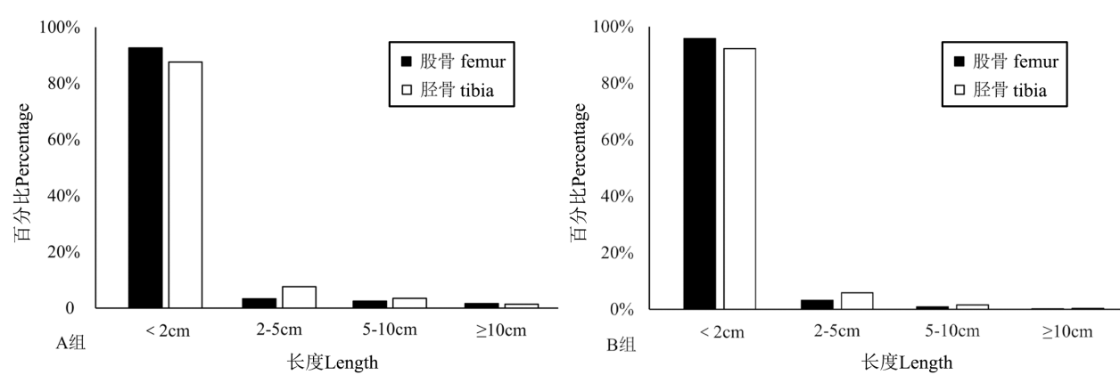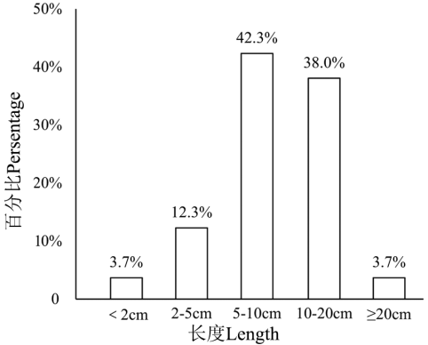 | 组别group↓ 长度length→ | L<2 cm | 2≤L<5 cm | 5≤L<10 cm | L≥10 cm | |