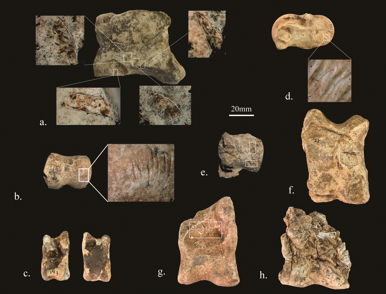 | 切割痕Cutting marks | 砍斫痕Chopping marks | 啮齿类动物齿痕Rodent gnawing marks | 食肉类动物齿痕Carnivore tooth marks | ||||||||