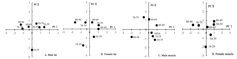 The bioelectrical impedance method was used to measure the body composition of 23352 adults (10070 males and 13282 females) from the minorities in China. This paper is to understand the current status of fat percentage and muscle mass in Chinese minorities, and to explore the changes in body composition with age. We found that males and females are generally overweighted, but not reached the level of obesity yet. Compared with the southern male ethnic groups, the males of northern Altaic languages ethnic groups have higher limb fat percentages, higher visceral fat levels and lower water percentages. Among the southern ethnic groups, the Tibeten-Burman languages ethnic groups, the Miao-Yao languages ethnic groups and the Zhuang-Dong languages ethnic groups have relatively close limb fat percentage, visceral fat level and water content. The South Asian languages ethnic groups has a large difference with these three southern ethnic groups. Compared with southern female ethnic groups, females from the northern Altaic languages ethnic groups have large torso and limb muscles and heavy bones. The female torso and limbs of the four southern ethnic groups have smaller muscle mass and lighter bones, which are close to each other. With age increases, male’s bone mass decreases, and water content increases, and upper extremity fat rate decreases, and trunk fat rate increases, and visceral fat levels increase, and fat concentrates in the trunk, and overall body fat rate increases. The muscle mass of the lower limbs of the male is reduced, and the muscle mass of the trunk is reduced, which ultimately leads to a decrease in the total muscle mass of the whole body. With age increases, the female’s fat rate and muscle mass of the upper extremities did not change significantly, the fat rate of the lower extremities decreased, the trunk fat rate and visceral fat level increased, the overall fat rate increased, the trunk muscle mass decreased, and the total muscle mass decreased. The cut-off point for male’s presumed decline in bone mass is 50 years old, and female is 60 years old. The cut-off point for a decline in total muscle mass in male is 40 years old, and female is 50 years old. The cut points for increasing the body moisture rate of males and females are all 60 years old, the cut points for increasing the visceral fat level are all 30 years old, the cut points for decreasing the total fat rate are all 60 years old, the cut points for increasing the body fat rate are 30 years old, and the cut-off points for torso muscle mass are 40 years old. We also found that body fat rate, visceral fat level and blood glucose levels were significantly positively correlated. The results of this paper basically reflect the basic laws of the changes in body composition from youth to the elderly.