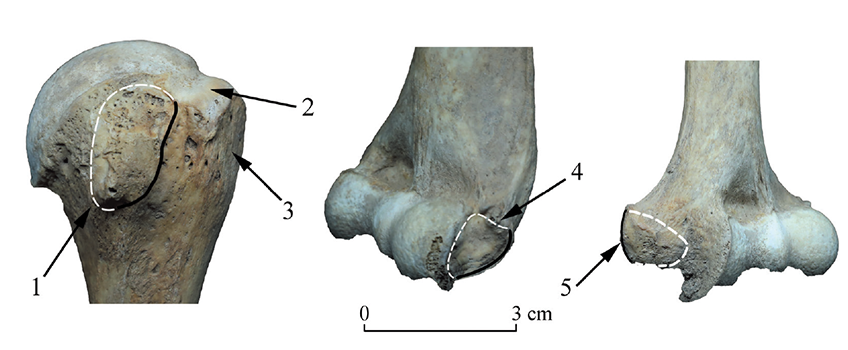 Deformation of the starting and ending points of the humeral tendon in the population from the Shuanghuaishu site in Henan Province