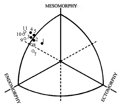 The values of stature, body mass, triceps skinfold, subscapular skinfold, anterior superior iliac skinfold and medial calf skinfold of 976 Tujia adults (528 males and 448 females) were measured in Hunan by anthropometry method, and the values of the body dense, body fat rate, fat mass, lean body mass, fat mass index and lean mass index were calculated by formula. The results were as follows: 1) With the increase of age, the thickness of medial calf skinfold decreased gradually, the values of triceps skinfold, subscapular skinfold, anterior superior iliac skinfold, body fat rate, fat mass, lean body mass, body mass index, fat mass index and lean mass index increased and then decreased, while the value of body density decreased and then increased; 2) The values of body density, lean body mass and lean mass index of females were significantly lower than those of male in the same age group, while the values of four skinfold thicknesses, body fat rate, fat mass and fat mass index were significantly greater than those of male; 3) Compared with 24 ethnic groups such as Blang, the distribution of skinfold thickness of Tujia adults in Hunan is in the medium level, and Tujia is closely related to Monba, Lhoba, Deng and Yi ethnic groups.